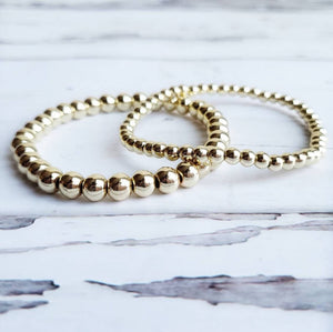 This gorgeous, delicate, stretch 14k gold-layered beaded bracelet set is perfect for everyday wear and stacking with your other favorite pieces! Its dainty design is perfect for wanderers and free-spirits alike!