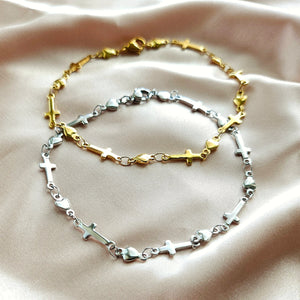 Radiate faith and love with every wear. ✨ Handcrafted from genuine 14k gold-filled, this timeless bracelet beautifully joins a delicate cross and heart. Symbolizing devotion, grace, and everlasting connection. At 7.5 inches, it’s designed for both comfort and everyday elegance, making it a meaningful reminder of hope that moves with you through life’s moments while supporting your spiritual journey.
