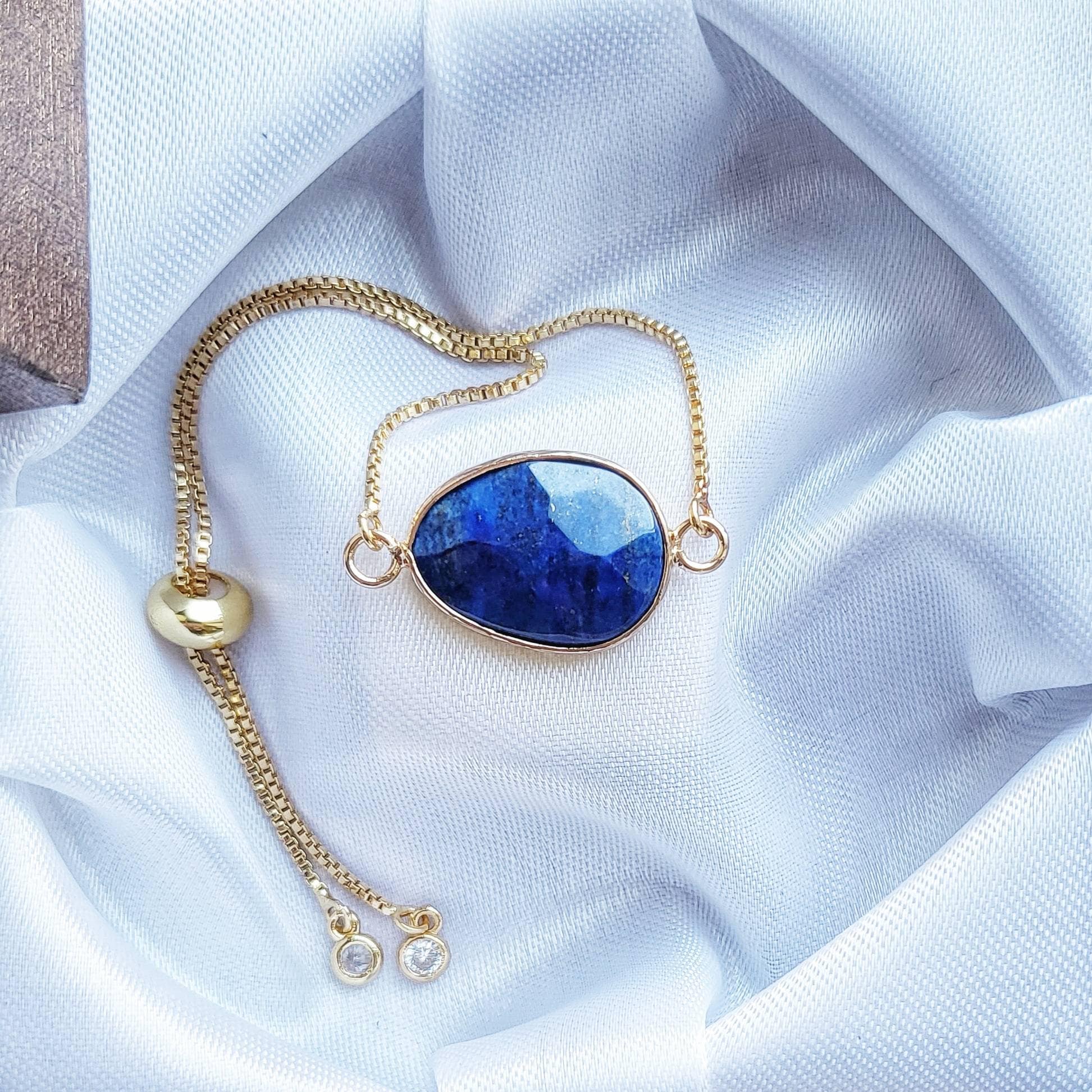 Your Lapis Lazuli is presented on a 14k gold-filled, adjustable (9.5 in MAX) box chain tennis bracelet and is perfect for everyday wear!