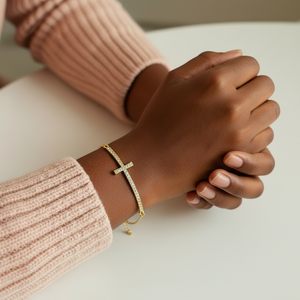 ✨ Keep your sacred faith close to you Radiant Faith 14k Gold-Filled Rhinestone Cross Bracelet. Each stone radiates divine light, symbolizing hope and unwavering faith. Ideal for daily wear or layering, this bracelet adds a heavenly touch to any outfit. It's more than jewelry; it's a declaration of grace.