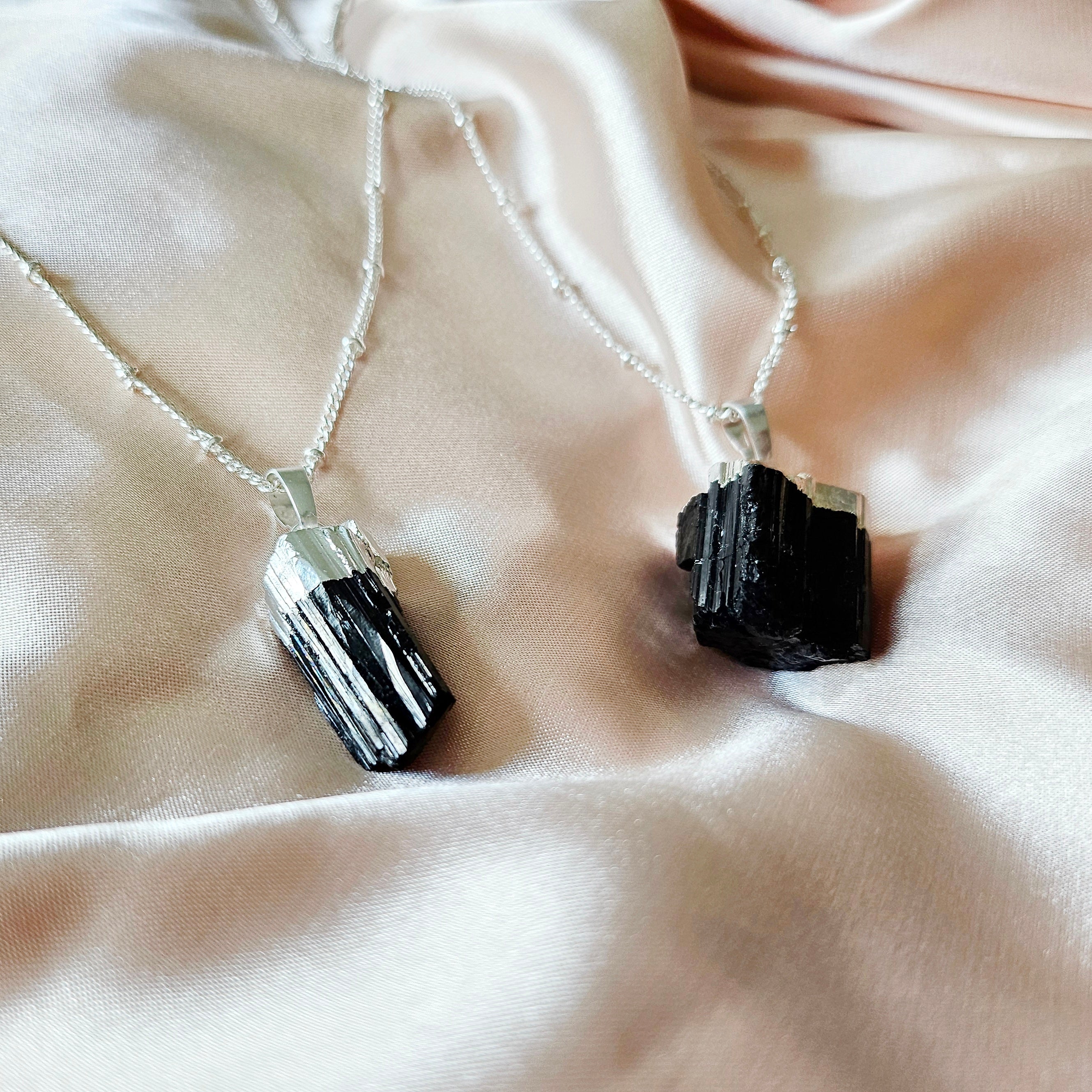Raw Black Tourmaline | 925 - Sterling Silver Beaded Satellite Gemstone Necklace