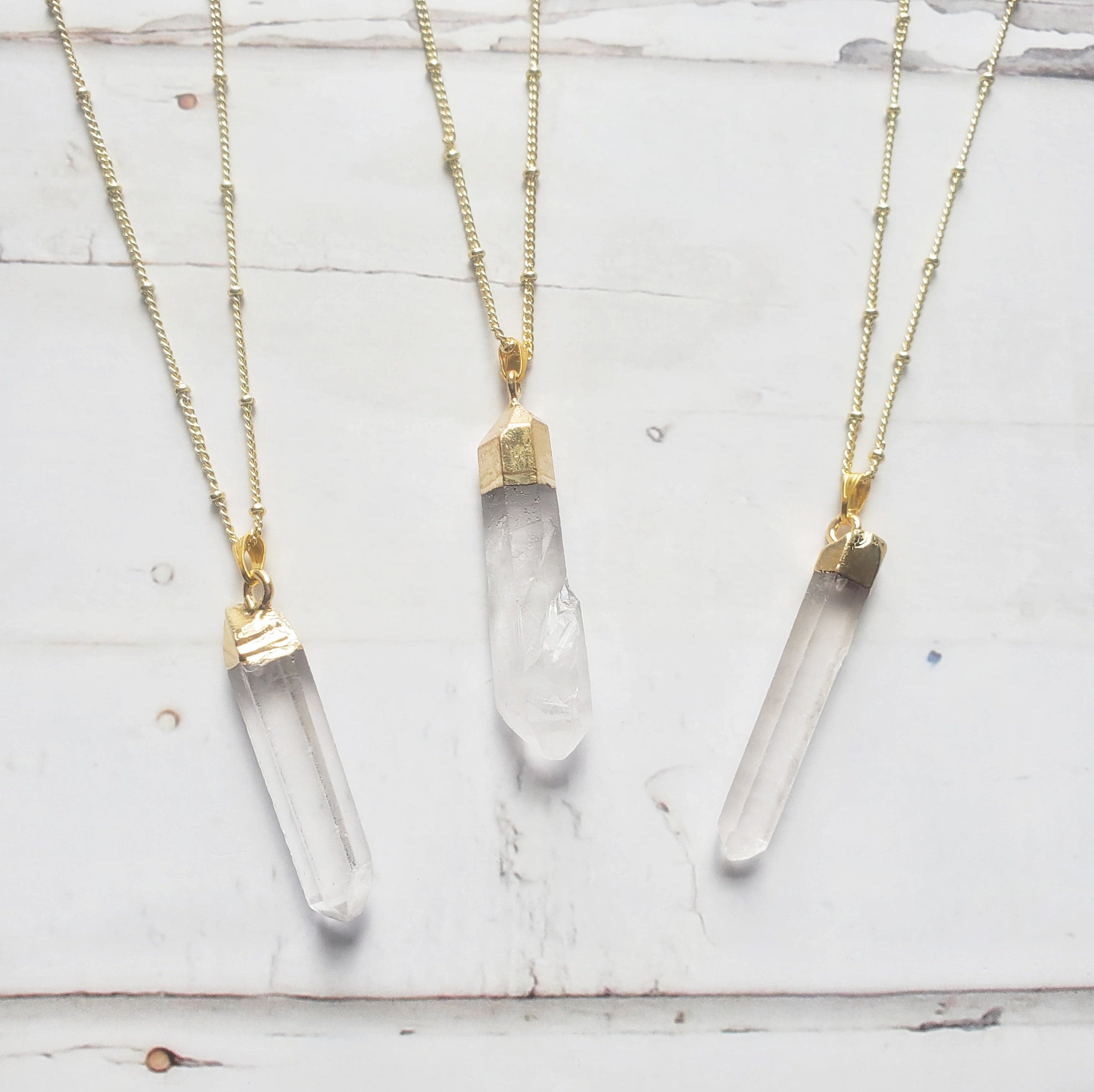 Your Clear Quartz crystal is presented on a stunning, 20-inch 14k gold-filled beaded satellite chain necklace. It's perfect for fans of the minimalist aesthetic or as a layering piece.