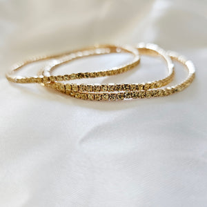 Elevate your bracelet stack with the Aurora Set. This gorgeous 3 piece set will add a touch of bedazzling shimmer to any look. These bracelets are the perfect combination of delicate and durable. They can be worn alone or stacked with other bracelets to create a style that's uniquely YOU.