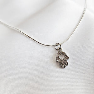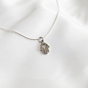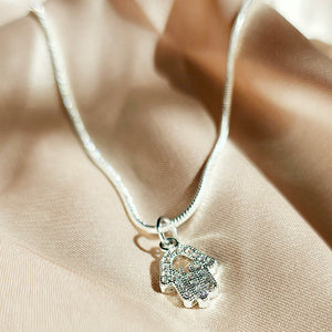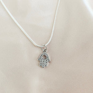 Welcome blessings, abundance, and protection with the HAMSA necklace. This necklace is handcrafted to draw in protection and good fortune for its wearer. The Hamsa is also known as the 'Hand of God'. In all faiths, it is an extremely protective sign, preventing misfortune associated with receiving the evil eye. It brings its owner happiness, luck, health, and an abundance of blessings. This necklace's simple design makes it great for everyday wear.