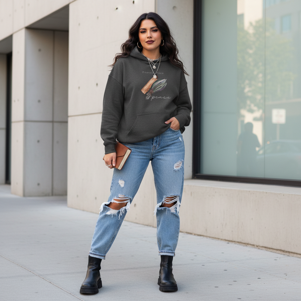The Protect Your Peace Hoodie is more than a cozy layer; it’s a gentle reminder to breathe, release, and stay grounded in your calm, no matter what’s happening around you. Featuring hand-painted sage and palo santo artwork, this design celebrates cleansing energy and spiritual protection in the most beautiful way.
