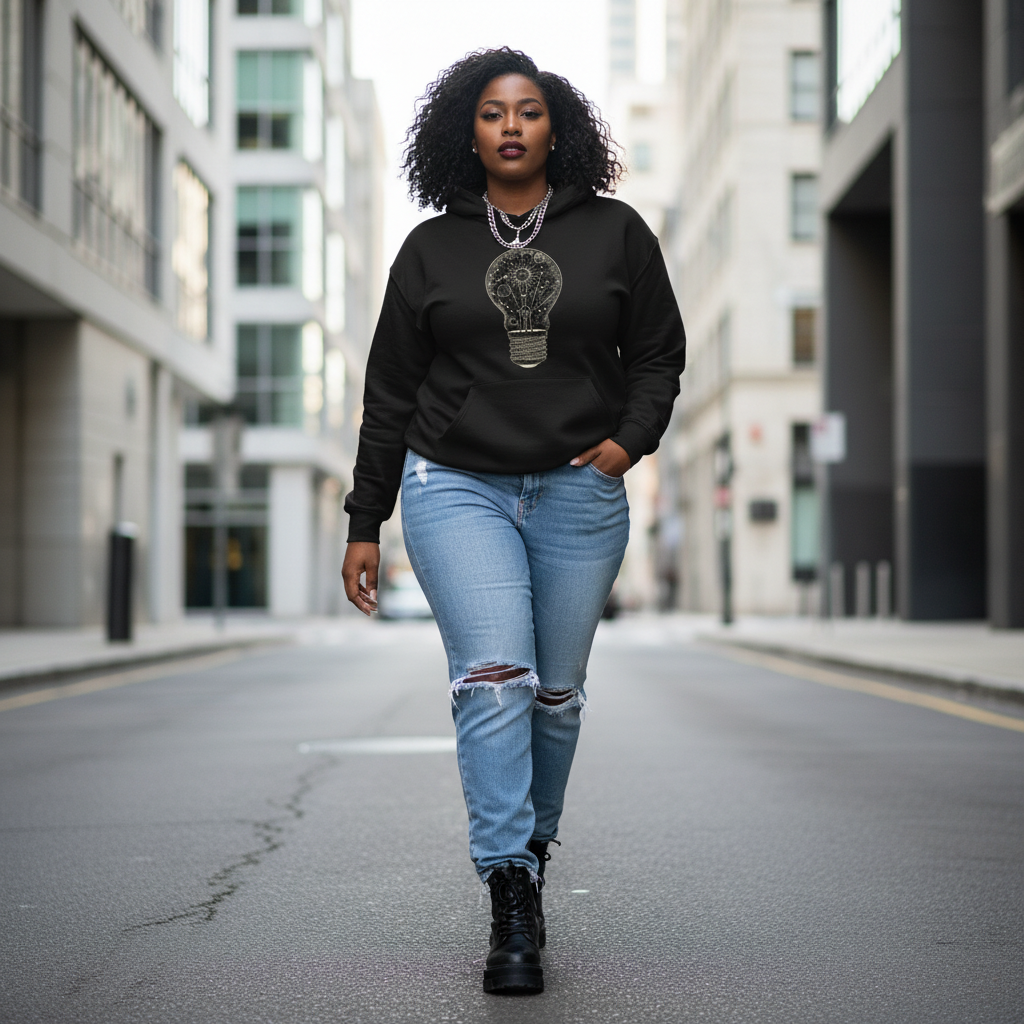 Let your ideas glow. The Celestial Lightbulb Sweatshirt is a whimsical nod to inspiration, creativity, and those little sparks of magic that light the way. Designed to add personality and charm to your everyday style, this piece blends playful energy with cozy comfort. Whether you’re dreaming, creating, or simply shining in your own way, this sweatshirt is made to stand out.