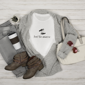 An effortless reminder to surrender, align, and keep moving forward with faith. This fitted tee is designed for everyday wear, offering a slim, feminine silhouette with a comfortably broken-in feel. Lightweight and easy to style, it’s the kind of piece you’ll reach for again and again, simple, meaningful, and made to feel like a favorite from day one.
