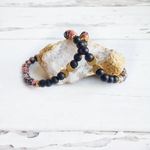 This beautiful yet powerful, energetically healing bracelet was created to assist in healing emotional wounds, foster self-love, and provide a grounding, stabilizing energy. CLARITY is handcrafted with Onyx and Rhodonite with two crescent moons in the center.