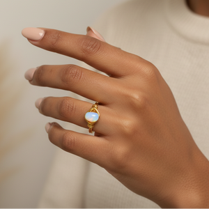Your Opalite is presented on a Silver or 18K gold-plated handmade wire wrapped ring band. It's perfect for fans of the minimalist aesthetic or as a stackable ring.