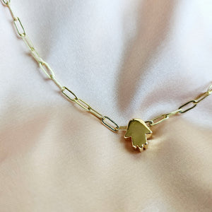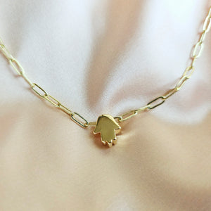 Sacred Hands | 14K Gold Filled Hamsa Paper Clip Chain Necklace Set