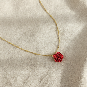 DIVINE BLOOM 14K Gold Red Rose Pendant Necklace