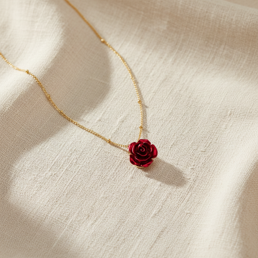 Embrace divine love with this radiant red rose pendant necklace, a timeless symbol of faith, renewal, and grace. 🌹 The rose’s deep crimson hue reflects the boundless love of God.