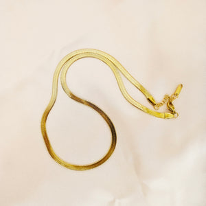 Turn heads with this stunning, delicate herringbone, flat snake chain necklace.