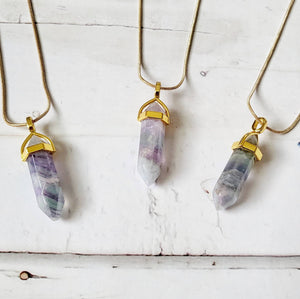 Rainbow Fluorite 14k Gold Crystal Necklace