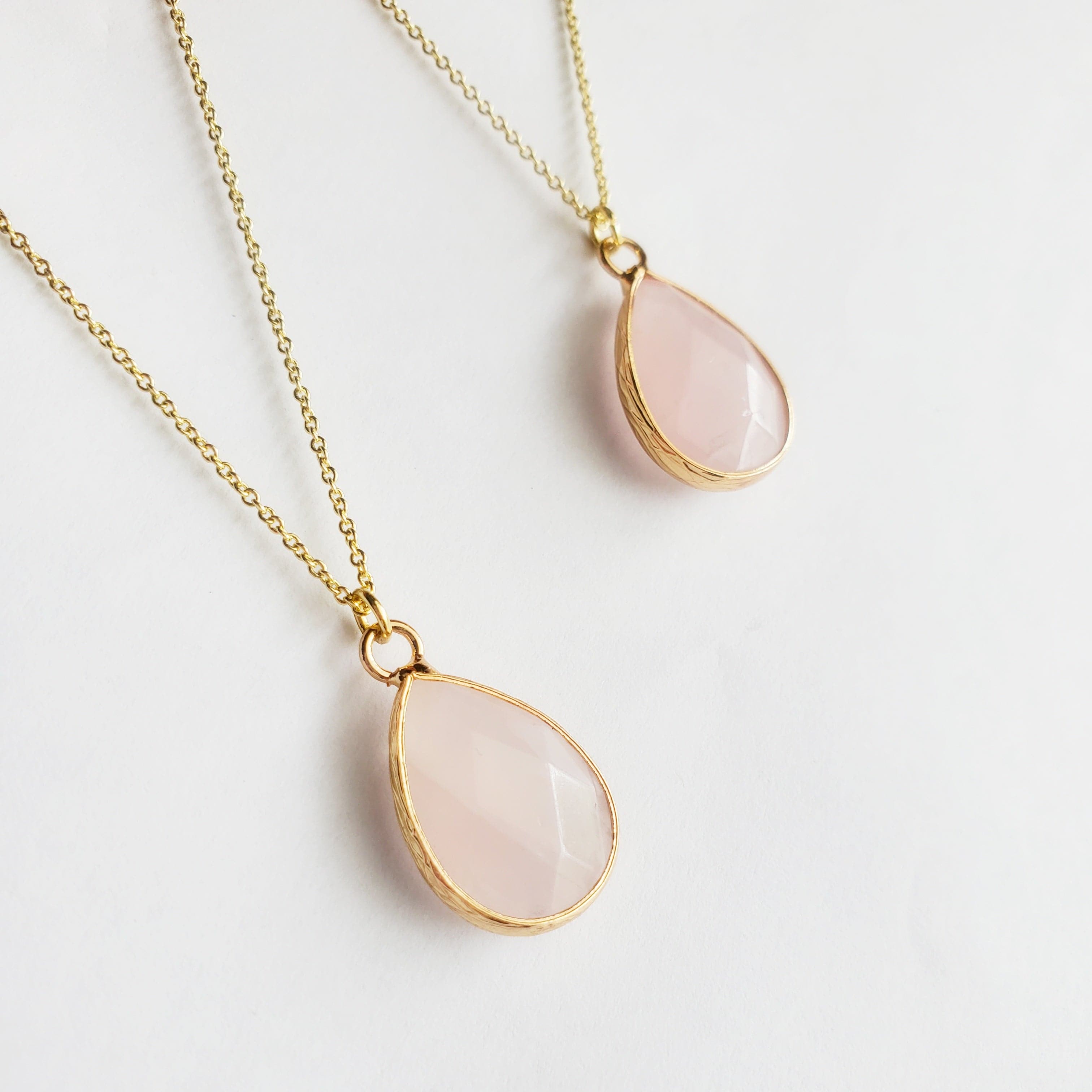 ROSE QUARTZ | 14K Gold Drop Crystal Pendant Necklace