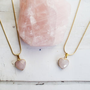 ROSE QUARTZ HEART | 14k Gold Crystal Healing Necklace