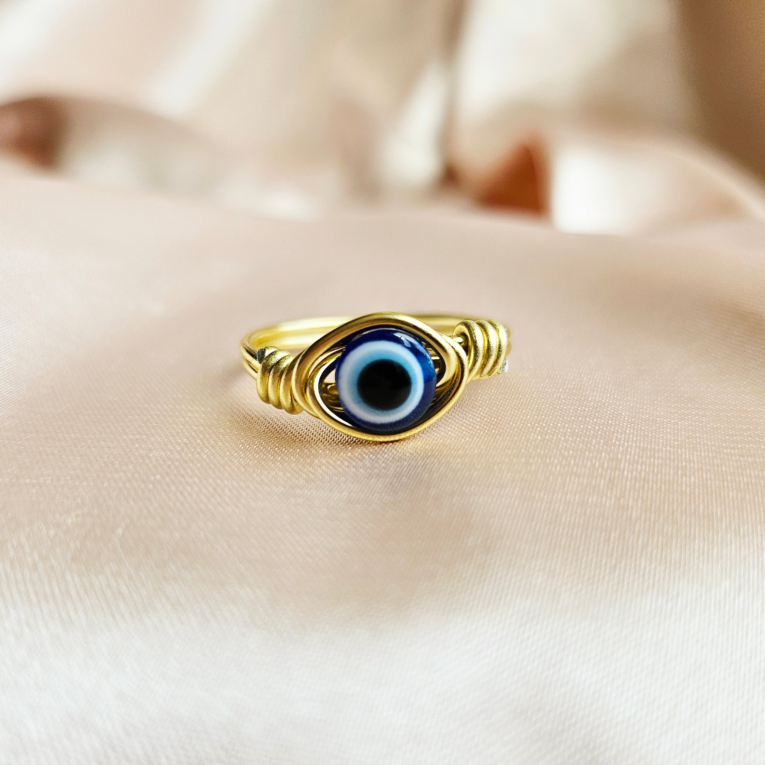 EVIL EYE | Minimalist 18K Gold-Layered Handmade Wire-Wrapped Ring