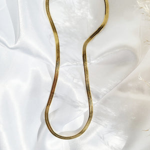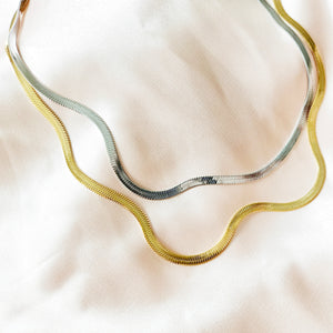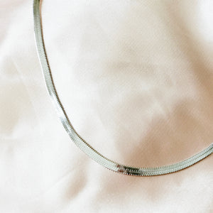 Turn heads with this stunning, delicate herringbone, flat snake chain necklace.