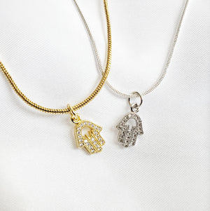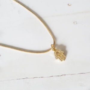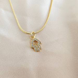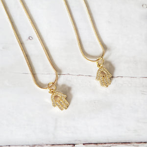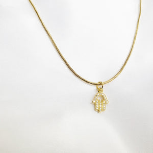 Welcome blessings, abundance, and protection with the PROTECTION necklace. This necklace is handcrafted to draw in protection and good fortune for its wearer. The Hamsa is also known as the 'Hand of God'. In all faiths, it is an extremely protective sign, preventing misfortune associated with receiving the evil eye. It brings its owner happiness, luck, health, and an abundance of blessings. This necklace's simple design makes it great for every day wear.