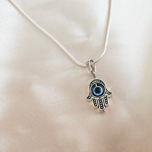 Welcome blessings, abundance, and protection with the PROTECTION necklace. This necklace is handcrafted to draw in protection and good fortune for its wearer. The Hamsa is also known as the 'Hand of God'. In all faiths, it is an extremely protective sign, preventing misfortune associated with receiving the evil eye. It brings its owner happiness, luck, health, and an abundance of blessings. This necklace's simple design makes it great for every day wear.