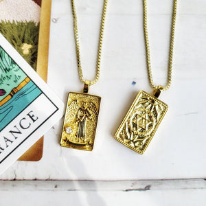 Keep the energy of balance and tranquility with you at all times with the Temperance tarot card necklace.