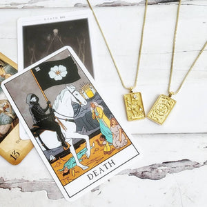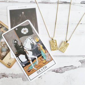Keep the energy of transformation, new beginnings, and surrender with you at all times with the Death Tarot Card necklace.