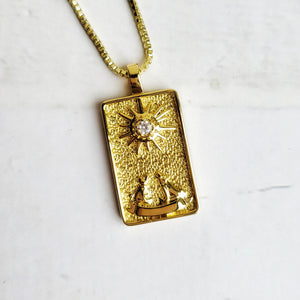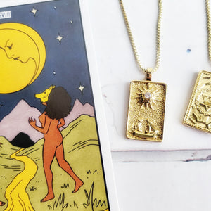 Tap into the intuitive subconscious and creative, imaginative energy with the Moon Tarot Card Necklace.