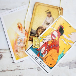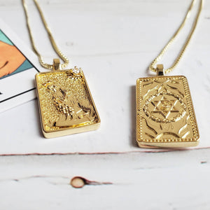 THE STRENGTH 14k Gold Tarot Deck Card Necklace