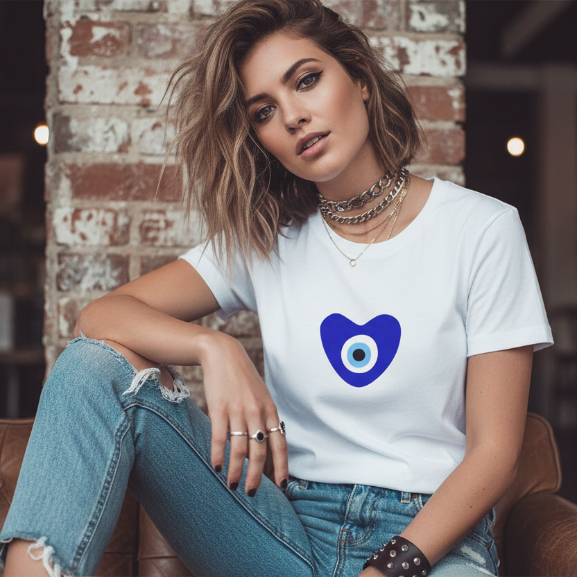 Our Evil Eye Heart Tee blends modern minimalism with ancient symbolism, featuring a bold yet refined evil eye nestled inside a heart. Designed to feel effortless and intentional, this piece is more than just a graphic tee. It’s a quiet layer of protection you carry with you.
