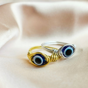 EVIL EYE | Silver Handmade Wire-Wrapped Ring
