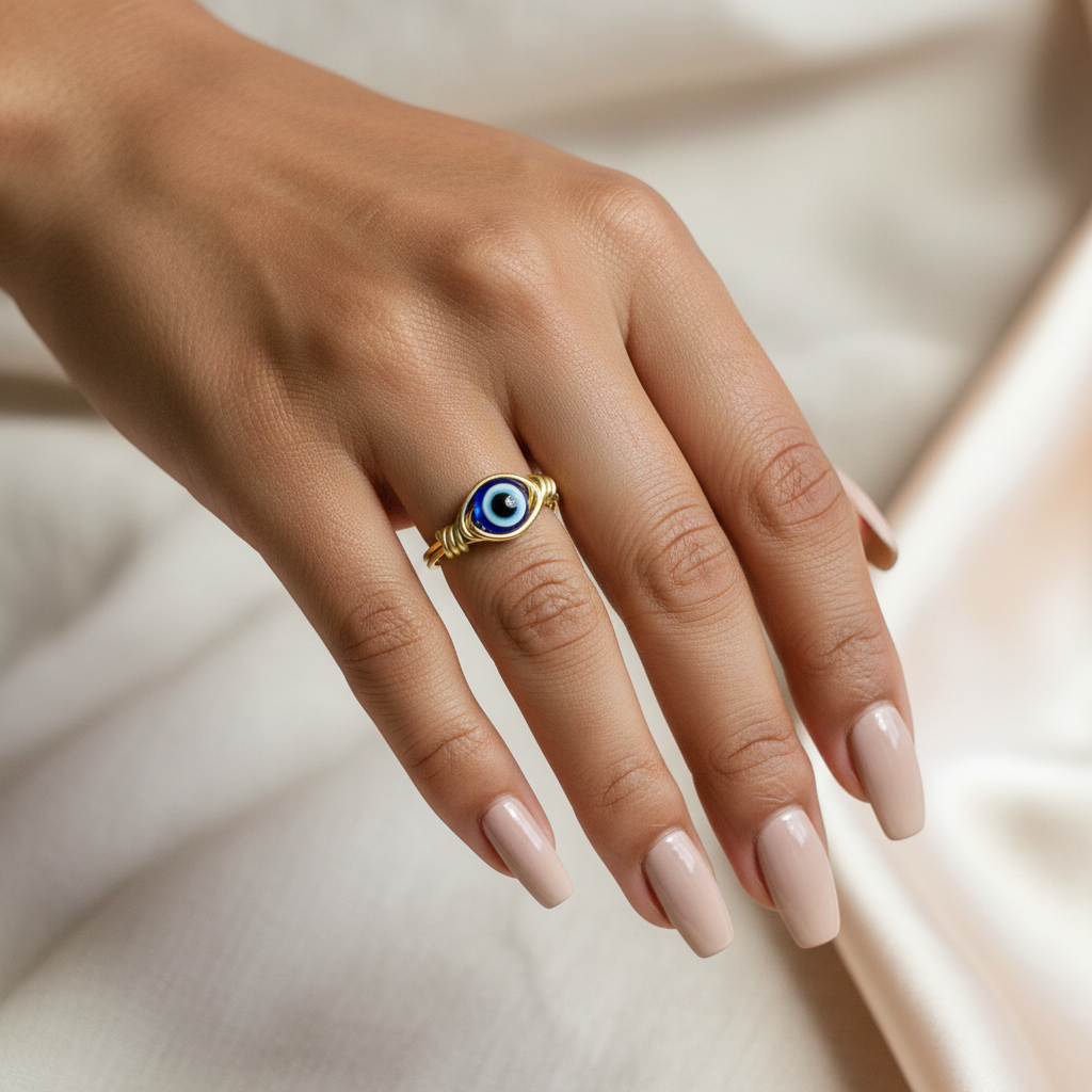 Each Evil Eye is presented on a handmade, gold-layered copper wire-wrapped band, offering a richer, more enduring glow and a naturally grounding, energy-conductive base. Copper has long been valued for its connection to balance and amplification, making this piece feel both meaningful and luxurious.