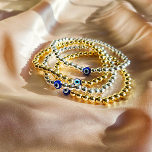 ☆ Please note: Listing is for ONE, 7.5 inch | 14K Gold-filled beaded Evil Eye bracelet.