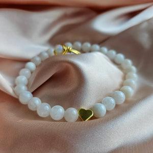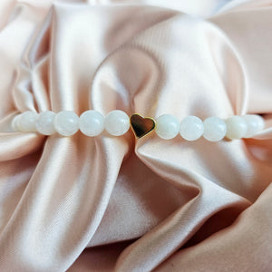 Your bracelet includes an 18k gold-filled dainty heart charm and 6mm AA grade natural moonstone gemstones.