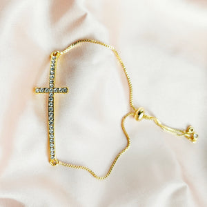 ✨ Keep your sacred faith close to you Radiant Faith 14k Gold-Filled Rhinestone Cross Bracelet. Each stone radiates divine light, symbolizing hope and unwavering faith. Ideal for daily wear or layering, this bracelet adds a heavenly touch to any outfit. It's more than jewelry; it's a declaration of grace.